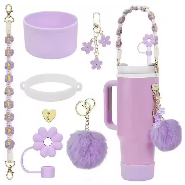 30oz மற்றும் 40oz அளவுகள் உட்பட மிகவும் பிரபலமான ஸ்டான்லி டம்ளர் மாதிரிகளுக்கு பொருந்தும் வகையில் வடிவமைக்கப்பட்டுள்ளது. ஸ்ட்ராப் மற்றும் ஸ்ட்ரா கேப் மெதுவாக பொருந்துகிறது, பயணம், உடற்பயிற்சிகளால் அல்லது வெளிப்புற சாகசங்களின் போது பாதுகாப்பான மற்றும் கவலையற்ற பயன்பாட்டை உறுதி செய்கிறது.