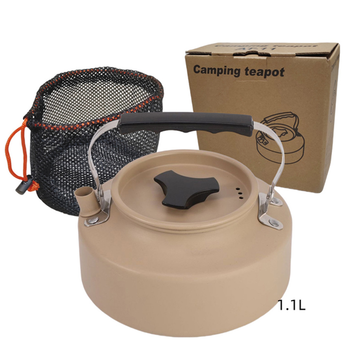 கேம்பிங் குக்வேர் செட் உடன் கெட்டில் போர்ட்டபிள் குக்கிங் பாட் செட். குழு சாகசங்களுக்கான உங்கள் அல்டிமேட் போர்ட்டபிள் கிச்சன் தீர்வு. இந்த அலுமினிய கேம்பிங் குக்வேர் செட் ஒரு பல்துறை கெட்டில் மற்றும் பல சமையல் பானைகளை உள்ளடக்கியது. 3-4 நபர்களுக்கு திறம்பட சேவை செய்ய வடிவமைக்கப்பட்டுள்ளது, இது நடைமுறை வெளிப்புற செயல்திறனுடன் இலகுரக நீடித்துழைப்பை ஒருங்கிணைக்கிறது.