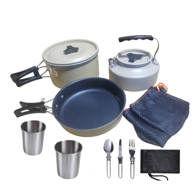 கேம்பிங் குக்வேர் செட் கேட்டில் போர்ட்டபிள் சமையல் பாட் செட்
