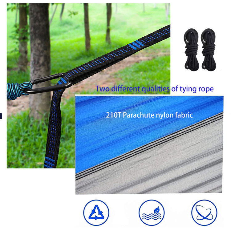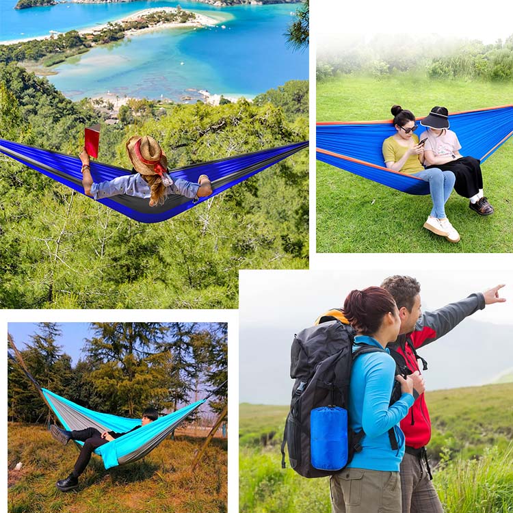கேம்பிங் ஹேமாக் போர்ட்டபிள் காம்பால் வெளிப்புற உட்புற ஒற்றை இந்த பல்துறை காம்பால் தனி சாகசங்கள் அல்லது இருவருக்கான வசதியான தருணங்களுக்காக நிபுணத்துவத்துடன் வடிவமைக்கப்பட்டுள்ளது. அதன் இலகுரக, தொகுக்கக்கூடிய வடிவமைப்பு எந்தவொரு முகாம் பயணத்திற்கும் அல்லது கொல்லைப்புறப் பயணத்திற்கும் இன்றியமையாத துணையாக அமைகிறது.
