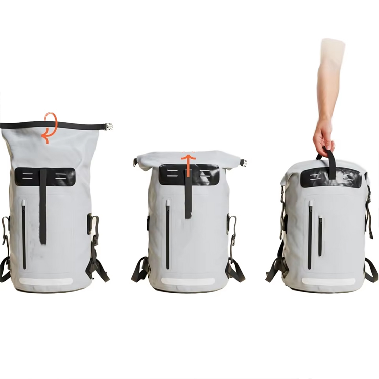கஸ்டம் அவுட்டோர் ஹெவி டியூட்டி ரோல்-டாப் க்ளோசர் ட்ரை பேக். வெளிப்புற சாகசங்களுக்கான உங்கள் புதுமையான நீர்ப்புகா தீர்வு. இந்த புதிய டிசைன் ட்ரை பேக், எளிதாக அடையாளம் காண ஒரு வெளிப்படையான ரோல்-டாப் க்ளோஷரைக் கொண்டுள்ளது. பல அளவு விருப்பங்கள் மற்றும் போர்ட்டபிள் கேரியிங் டிசைனுடன், இது ஹைகிங் மற்றும் பல்வேறு ஈரமான சூழல்களுக்கு ஏற்றது.