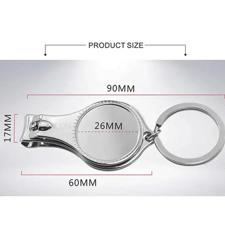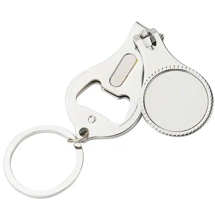 மடிக்கக்கூடிய ஹேண்ட் டோ ஓப்பனர் கீரிங் நெயில் கத்தரிக்கோல் நெயில் கட்டர்கள். நெயில் கத்தரிக்கோல், பாட்டில் ஓப்பனர் மற்றும் கீ ஹோல்டர் ஆகியவற்றைக் கொண்ட நீடித்த பல செயல்பாடு மடிக்கக்கூடிய கீரிங், பயணத்திற்கும் அன்றாட பயன்பாட்டிற்கும் ஏற்றது. பதங்கமாதல் வெற்று மேற்பரப்பு தனிப்பயன் லோகோக்கள் அல்லது வடிவமைப்புகளை அனுமதிக்கிறது, இது ஒரு சிறந்த விளம்பர பரிசு அல்லது தனிப்பயனாக்கப்பட்ட துணை.