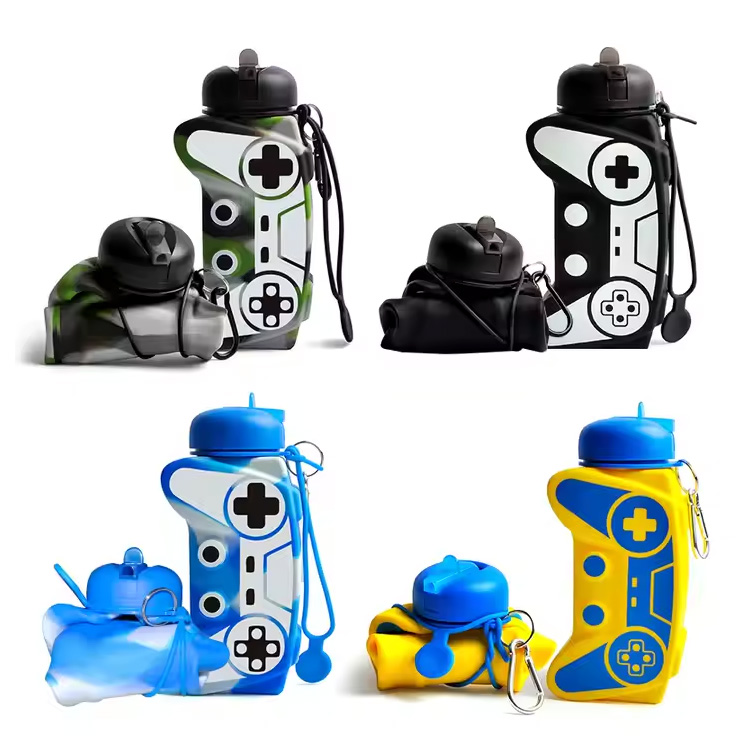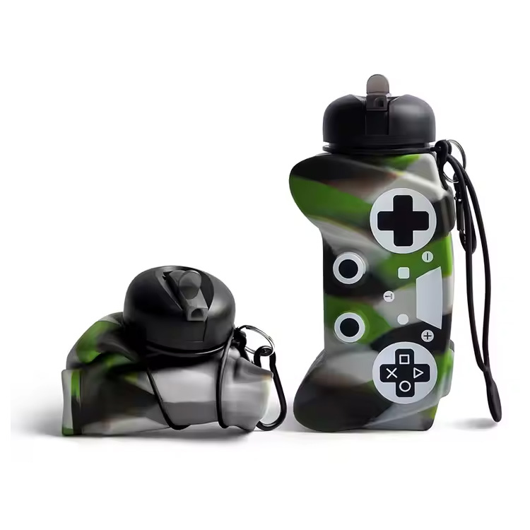 இலவச மடக்கு சிலிகான் தண்ணீர் பாட்டில்கள் புதிய வடிவமைப்பு விளையாட்டு வடிவம். விளையாட்டு கட்டுப்பாட்டு வடிவமைப்பு, பிபிஏ இல்லாத, இலகுரக மற்றும் கசிவு ப்ரூஃப் கொண்ட மடிக்கக்கூடிய சிலிகான் நீர் பாட்டில். குழந்தைகள், விளையாட்டாளர்கள் மற்றும் வெளிப்புற பயன்பாட்டிற்கு ஏற்றது. தனிப்பயன் லோகோ கிடைக்கிறது. முகாம், பயணம், நடைபயணம் மற்றும் விளம்பர பரிசுகளுக்கு ஏற்றது.