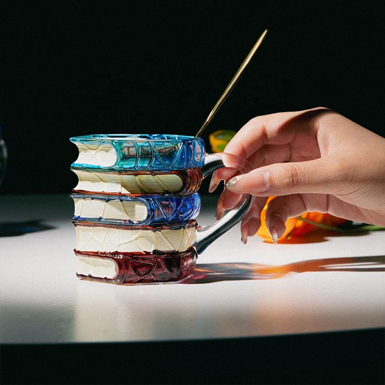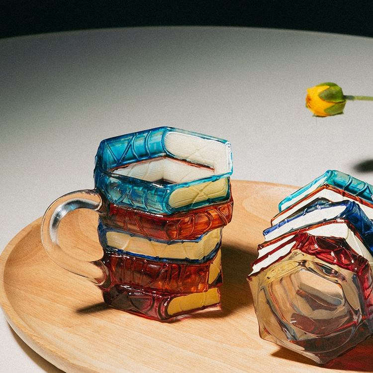 கையால் வர்ணம் பூசப்பட்ட கண்ணாடி காபி கோப்பை 3D வர்ணம் பூசப்பட்ட புத்தக காபி குவளை. கையால் வரையப்பட்ட புத்தக கண்ணாடி காபி கோப்பை ஒரு தனித்துவமான 3D அடுக்கப்பட்ட புத்தக வடிவமைப்பைக் கொண்டுள்ளது, புத்தகப் பிரியர்களுக்கும் காபி ஆர்வலர்களுக்கும் ஏற்றது. துடிப்பான நிறங்கள் கொண்ட நீடித்த கண்ணாடி கட்டுமானம், வீடு மற்றும் அலுவலகத்திற்கான சிறந்த பரிசாக அல்லது அலங்காரத் துண்டு.