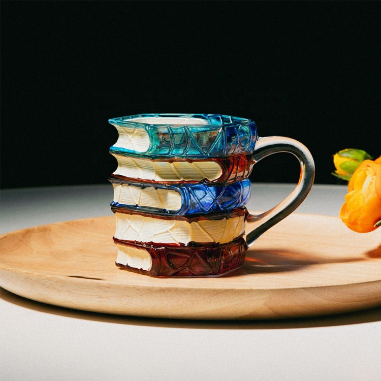 இந்த கிரியேட்டிவ் காபி கப், அடுக்கப்பட்ட புத்தகங்களின் அற்புதமான 3D வடிவமைப்பைக் கொண்டுள்ளது, இது கலைத்திறன் மற்றும் செயல்பாட்டின் சரியான கலவையாக அமைகிறது. புத்தகப் பிரியர்களையும் சேகரிப்பாளர்களையும் ஒரே மாதிரியாக மகிழ்விக்கும் வகையில், கடினமான புத்தக முதுகுத்தண்டுகள் முதல் யதார்த்தமான பக்கங்கள் வரை ஒவ்வொரு விவரமும் மிக நுணுக்கமாக வடிவமைக்கப்பட்டுள்ளது.