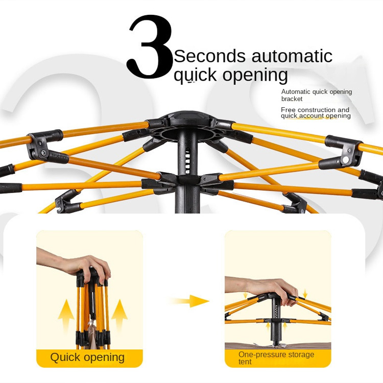 உயர்தர 2, 4, 6-நபர் நீர்ப்புகா தானியங்கி வெளிப்புறக் கூடாரம் 2, 4, அல்லது 6 நபர்களுக்காக வடிவமைக்கப்பட்டுள்ளது, இது சிறந்த நீர்ப்புகா மற்றும் காற்று புகாத பாதுகாப்பிற்காக உயர்ந்த இரட்டை தடிமனான ஆக்ஸ்போர்டு துணியைக் கொண்டுள்ளது. அனைத்து வானிலை வெளிப்புற சாகசங்களுக்கான உங்கள் நம்பகமான தங்குமிடம்.