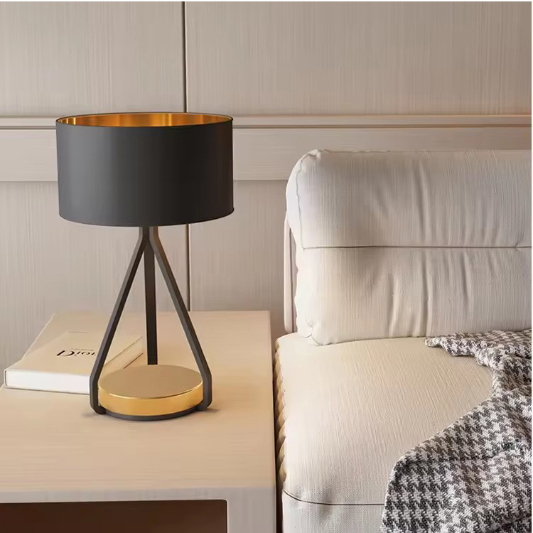 ஹோட்டல் நவீன கருப்பு படுக்கையறை படுக்கையறை வடிவமைப்பு அட்டவணை விளக்கு. ஒரு நேர்த்தியான வடிவியல் அடிப்படை வடிவமைப்பைக் கொண்ட நவீன கருப்பு மற்றும் தங்க மேசை விளக்கு. எந்த அறையையும் உயர்த்துவதற்கு ஏற்றது’சூடான, சுற்றுப்புற விளக்குகள் மற்றும் நேர்த்தியான அலங்காரத்துடன் கூடிய ஸ்டைல்.