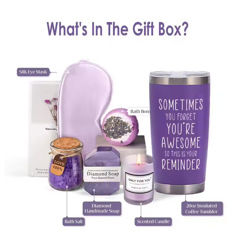 ஒவ்வொரு Lunaire பரிசுப் பெட்டியிலும் ஒரு துருப்பிடிக்காத ஸ்டீல் டம்ளர், நறுமண மெழுகுவர்த்தி, வைர வடிவ சோப்பு, உலர்ந்த பூக்கள் மற்றும் வாழ்த்து அட்டைகள் போன்ற அழகான ஒருங்கிணைக்கப்பட்ட பொருட்கள் உள்ளன. எந்தவொரு சந்தர்ப்பத்திற்கும் முழுமையான, இதயப்பூர்வமான அனுபவத்தை வழங்கும் போது, இந்த பரிசுக்கு தயாராக உள்ள தொகுப்பு உங்கள் நேரத்தை மிச்சப்படுத்துகிறது.