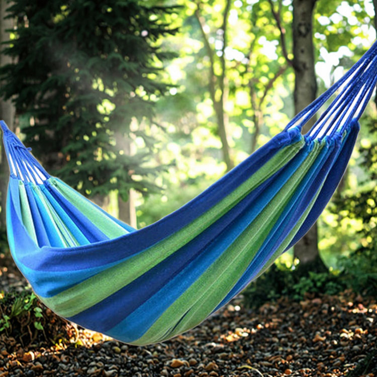 வெளிப்புற வசதியான கேம்பிங் 2-நபர் கேன்வாஸ் காம்பால் இந்த ஒற்றை-நபர் கேம்பிங் காம்பால் டார்க் கார்பைனர்கள் மற்றும் சரிசெய்யக்கூடிய மரப் பட்டைகளுடன் நீடித்த டஃபெட்டா ஃபேப்ரிக் கட்டுமானத்தைக் கொண்டுள்ளது. அதிகபட்ச ஆறுதல் மற்றும் எளிதான அமைப்பிற்காக வடிவமைக்கப்பட்டுள்ளது, இது வனப்பகுதி ஓய்வெடுப்பதற்கான உங்கள் சிறந்த துணை.