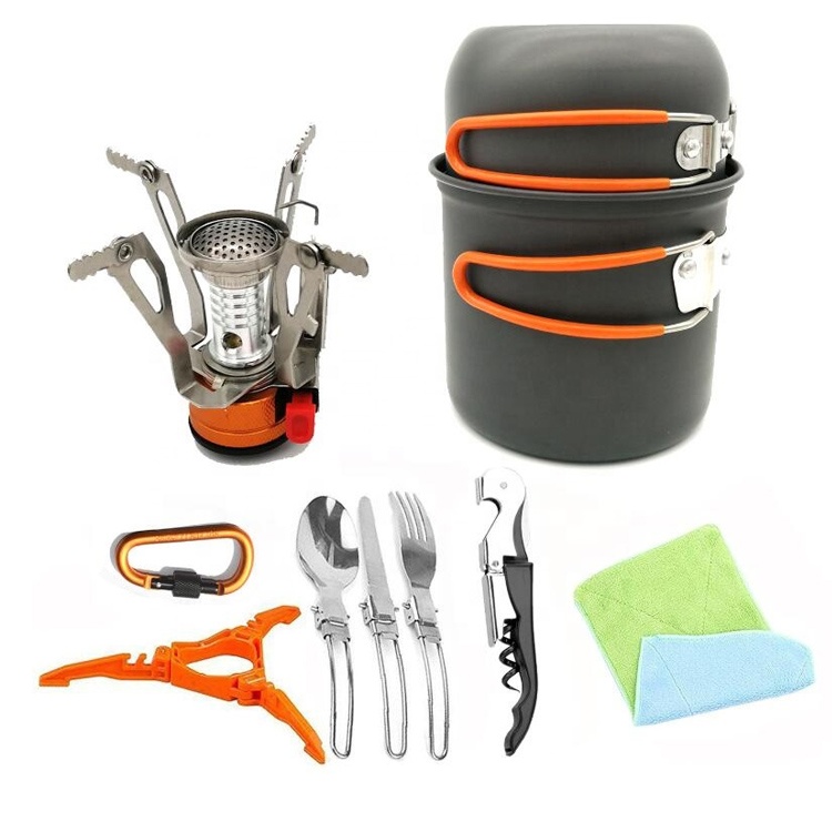 வெளிப்புற போர்ட்டபிள் கேம்பிங் ஹைக்கிங் பேக் பேக்கிங் குக்வேர் செட்