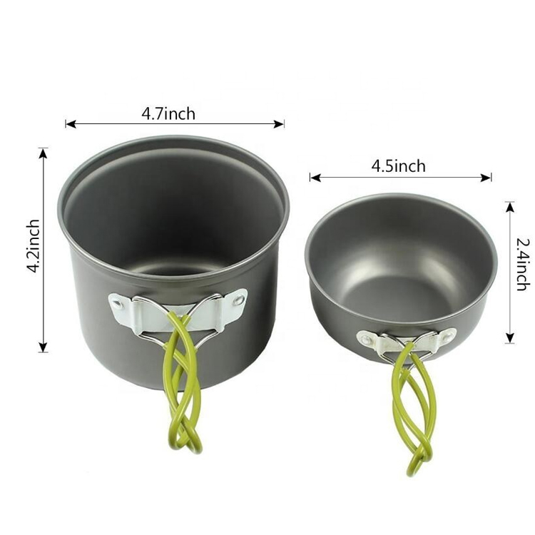 அவுட்டோர் போர்ட்டபிள் கேம்பிங் ஹைக்கிங் பேக் பேக்கிங் குக்வேர் செட். வெளிப்புற சாகசங்களுக்கான உங்கள் அல்டிமேட் காம்பாக்ட் சமையல் தீர்வு. இந்த சூடான தயாரிப்பு சமையல் பாத்திரங்கள் 1-2 நபர்களுக்கான கேம்பிங் மற்றும் ஹைக்கிங் பயணங்களுக்காக வடிவமைக்கப்பட்டுள்ளது. பேக் பேக்கிங் மற்றும் அவசரத் தயார்நிலைக்கு ஏற்றது, இது அத்தியாவசிய சமையல் கருவிகளை அதிகபட்ச பெயர்வுத்திறனுடன் ஒருங்கிணைக்கிறது.