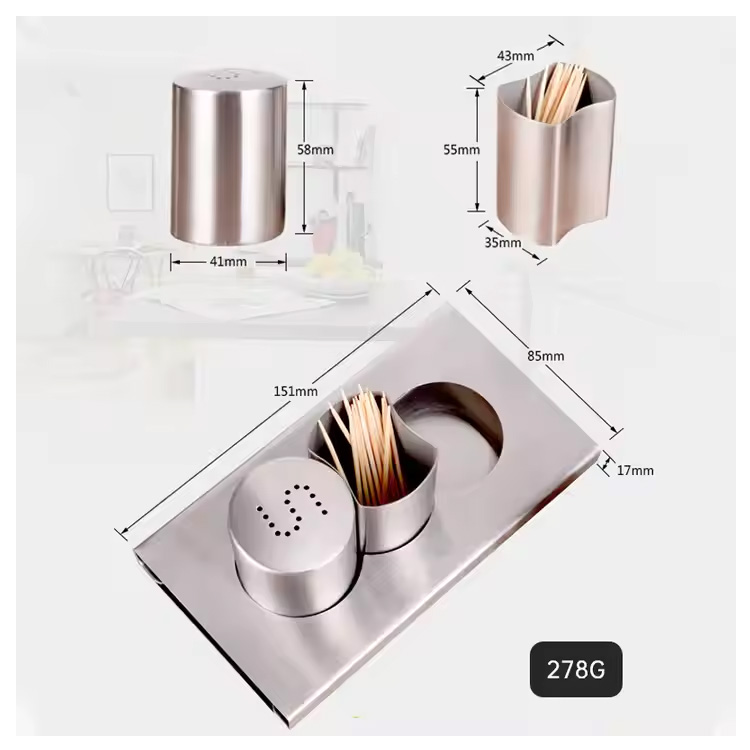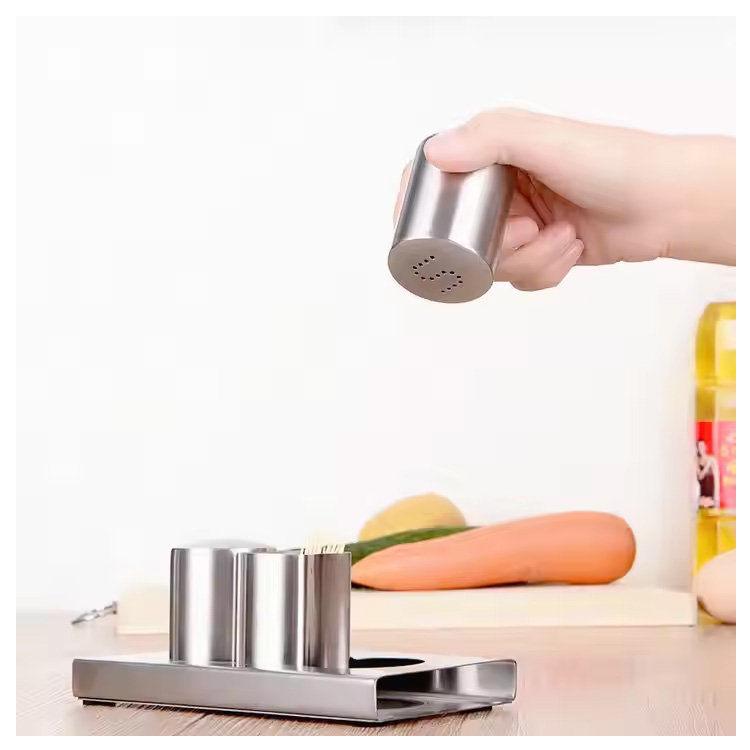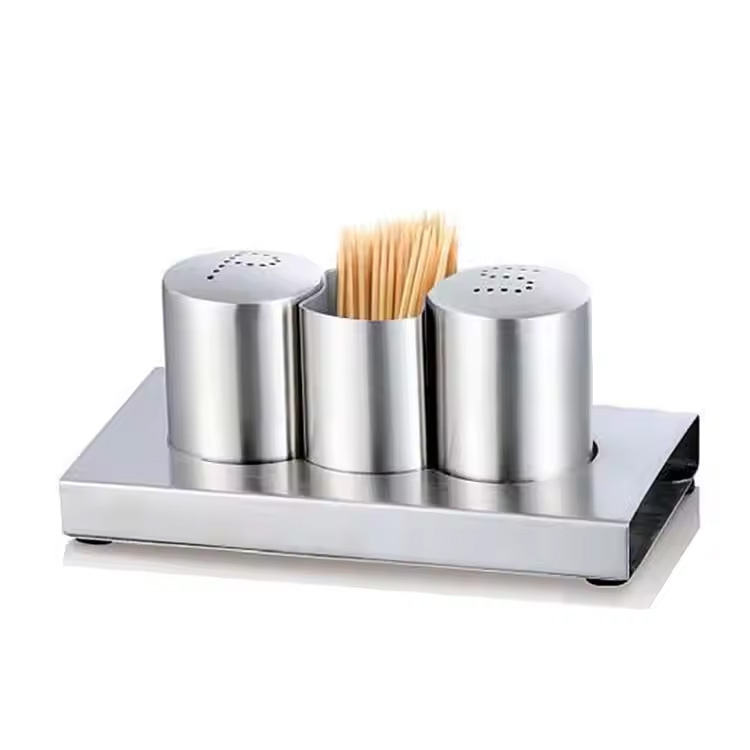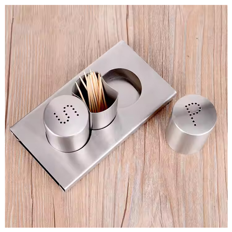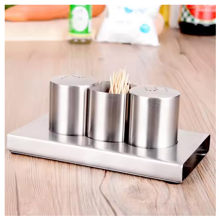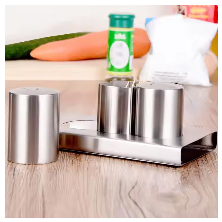 உயர்தர, உணவு தர எஃகு ஆகியவற்றிலிருந்து வடிவமைக்கப்பட்ட இந்த சுவையூட்டும் தொகுப்பு துரு-எதிர்ப்பு, நீடித்தது, மேலும் சமையலறைகள் அல்லது வெளிப்புற BBQ களில் தினசரி பயன்பாட்டைத் தாங்கும் வகையில் கட்டப்பட்டுள்ளது. அதன் நேர்த்தியான, பிரஷ்டு பூச்சு எந்த சாப்பாட்டு அமைப்பிற்கும் நவீன தொடுதலை சேர்க்கிறது.