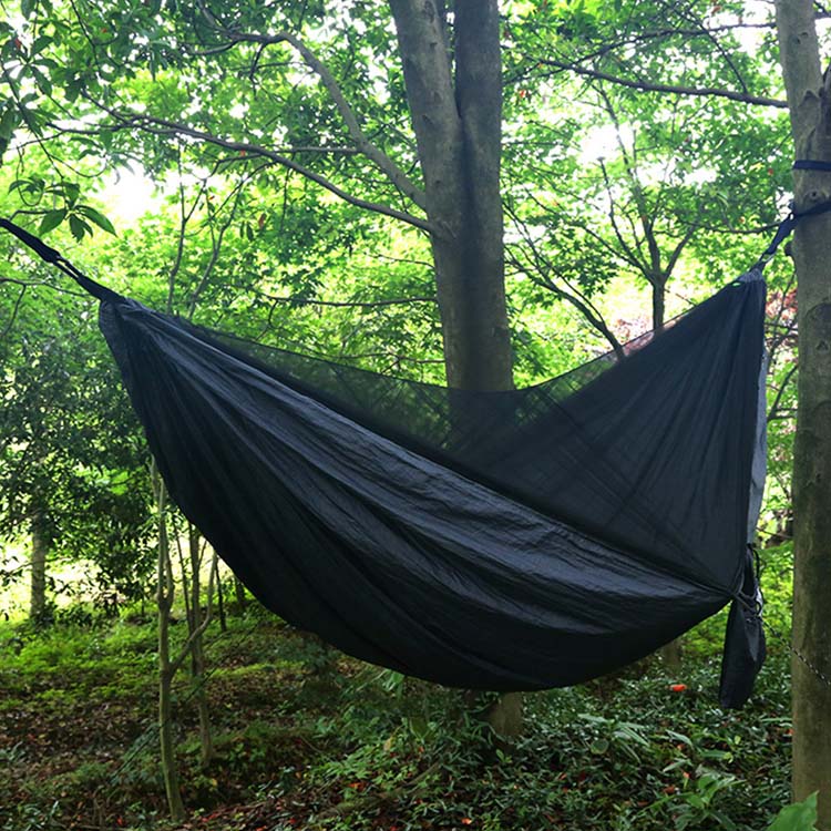 ஃபைன்-மெஷ் வலையானது காம்பை ஒரு zippered நுழைவு அமைப்புடன் முழுமையாகச் சூழ்ந்து, சிறந்த காற்றோட்டத்தை பராமரிக்கும் போது, ​​கொசுக்கள் மற்றும் பிற கடிக்கும் பூச்சிகளுக்கு எதிராக ஊடுருவ முடியாத தடையை உருவாக்குகிறது.