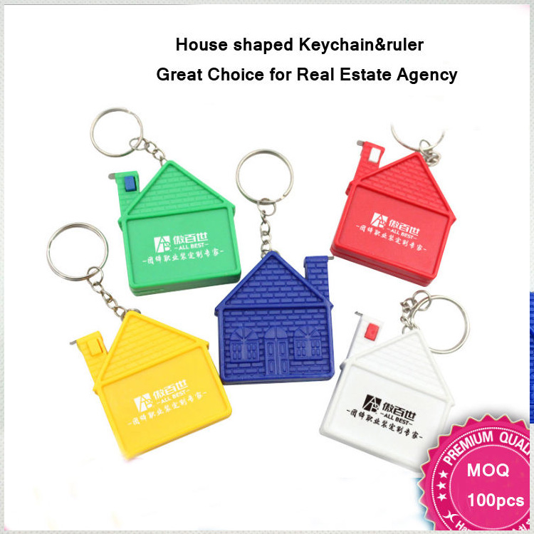 விளம்பர தயாரிப்புகள் அச்சிடப்பட்ட வீடு வடிவ சாவிக்கொத்தை ஆட்சியாளர்