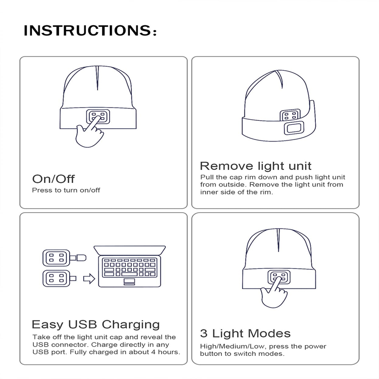 ரிச்சார்ஜபிள் ஹேண்ட்ஸ்-ஃப்ரீ LED ஹெட்லேம்ப் தொப்பி பின்னப்பட்ட இரவு விளக்கு. எங்கள் புதுமையான LED கேப் லைட் மூலம் உங்கள் இரவுகளை ஒளிரச் செய்யுங்கள். இந்த ரிச்சார்ஜபிள் ஹெட்லேம்ப் தொப்பி ஆண்கள் மற்றும் பெண்கள் இருவருக்கும் ஒரு வசதியான பின்னப்பட்ட வடிவமைப்பைக் கொண்டுள்ளது. ஹேண்ட்ஸ்-ஃப்ரீ லைட்டிங் வழங்குகிறது, இது இரவு ஓட்டங்கள், முகாம் அல்லது பிரகாசமான, கவனம் செலுத்தும் ஒளி தேவைப்படும் எந்தவொரு பணிக்கும் சரியான துணை.