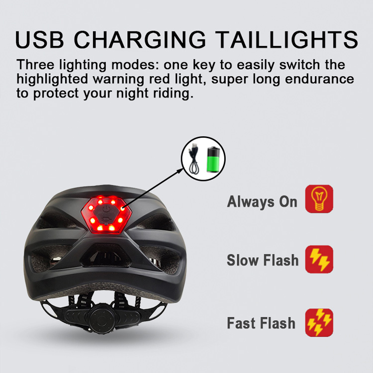 ரிச்சார்ஜபிள் டெயில்லைட் சுவாசிக்கக்கூடிய பாதுகாப்பு சாலை பைக் ஹெல்மெட்