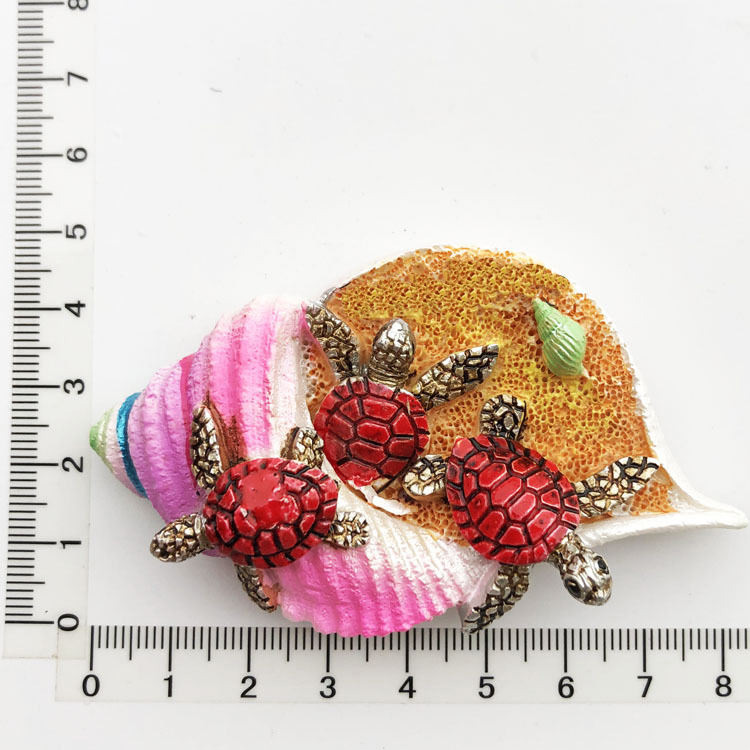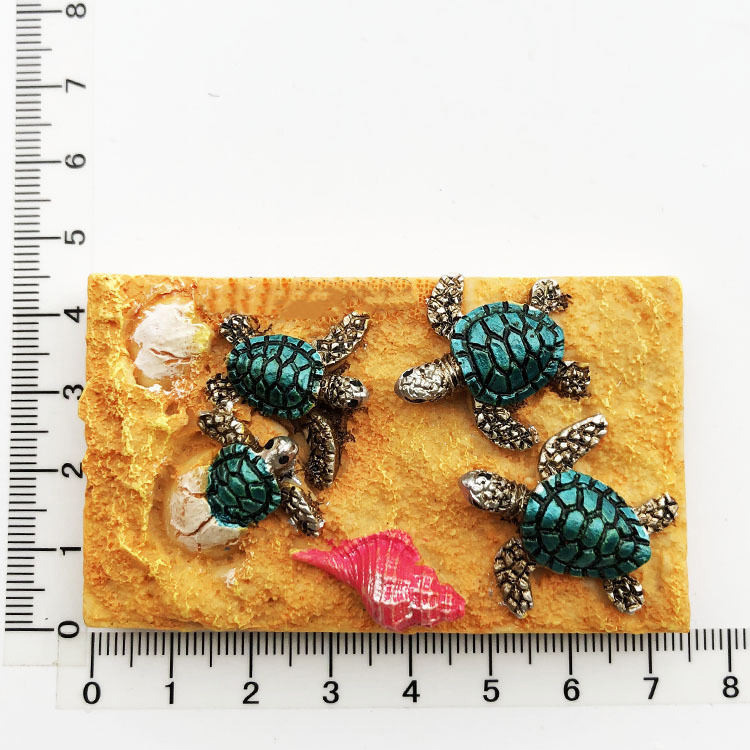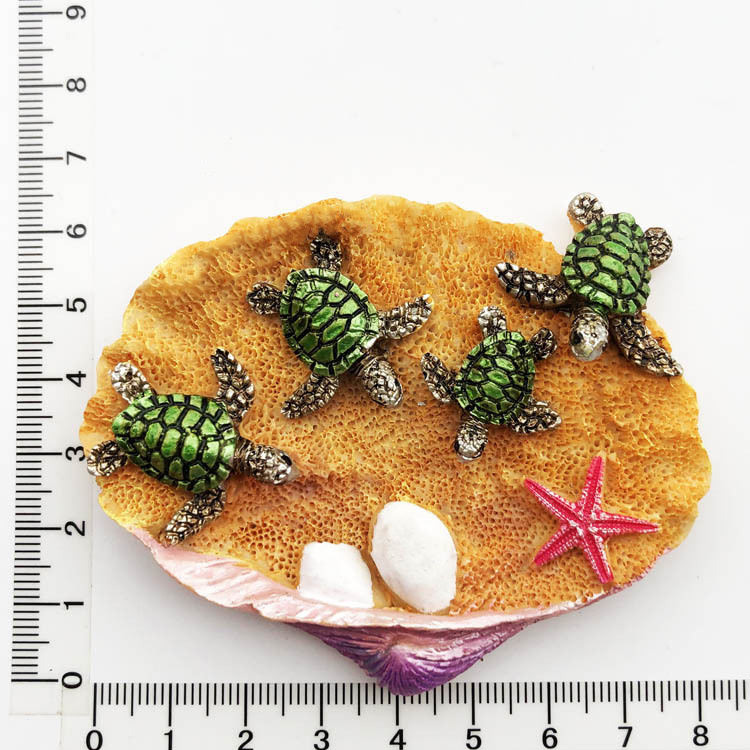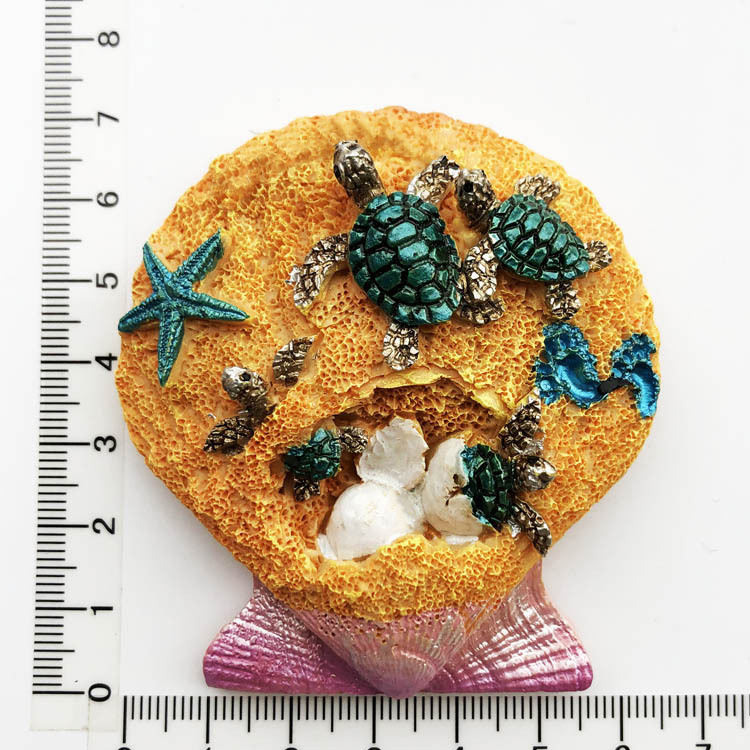 மூன்று நுணுக்கமான விவரமான ஆமைகளால் அலங்கரிக்கப்பட்ட அபிமான நட்சத்திரமீன் வடிவத்தைக் கொண்ட இந்த குளிர்சாதனப்பெட்டி காந்தம் கடலின் அழகை ஒரு அழகான, மினியேச்சர் கலைப் படைப்பில் படம்பிடிக்கிறது. உங்கள் வீட்டிற்கு ஒரு யதார்த்தமான மற்றும் அலங்காரத் தொடர்பைக் கொண்டுவர ஒவ்வொரு உறுப்பும் கவனமாக செதுக்கப்பட்டுள்ளது.